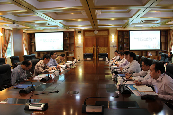 随后,发展规划处处长陈伟光,教务处处长詹文都,科研处处长阳爱民,组织部、统战部部长、人事处处长方迎生,人事处副处长、教师发展中心主任谢文新依次就“协同创新工作情况”、“提高教育质量”、“科研国际化的举措”、“师资队伍建设情况”及“教师发展中心情况”五大方面的问题展开汇报和研讨。
